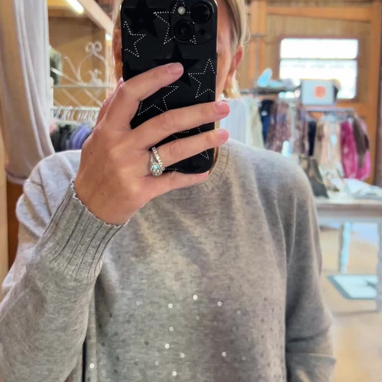 The most super soft fine knit with grey sequin detail - one size suits upto 16.