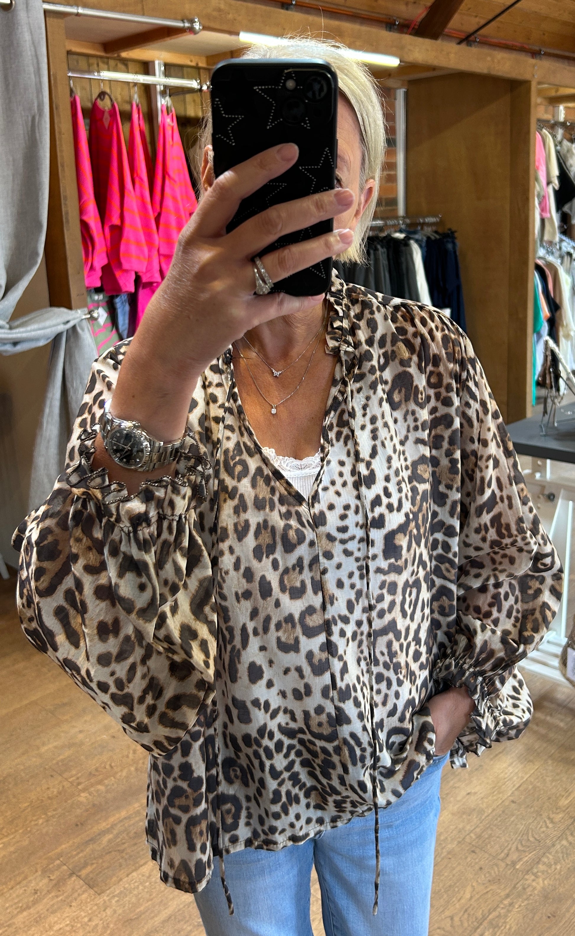 Fabulous silk feel blouse with tie neck detail, balloon sleeves with elasticated cuffs - one size suits upto 14/small 16.